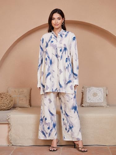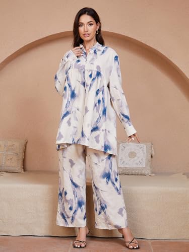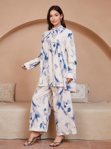 Specification: 2 Piece Casual Outfits for Women, Long Sleeve Button Down Shirt Top & Wide Leg Pants Sets, Boho Print Sets Loungewear Tracksuit