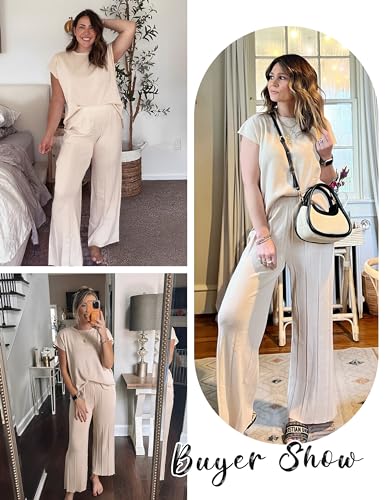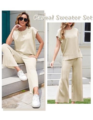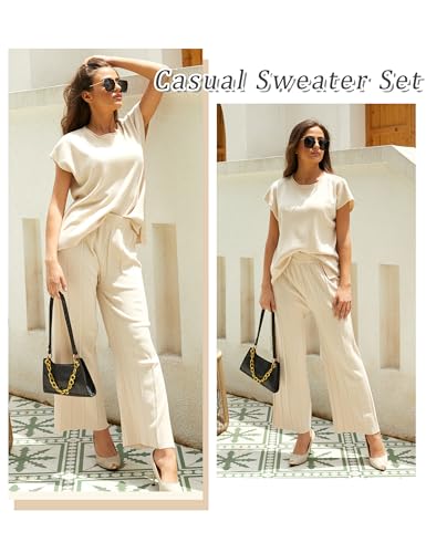 Specification: Aedceal Women’s Sweater Set 2 Piece Lounge Set Knit Pullover Tops Vest High Waisted Pants Outfits