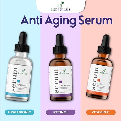 Aitnaturals Anti-Aging Serum Set (Each 30ml) | Powerful Trio of Vitamin C, Retinol, & Hyaluronic Acid | Reduces Wrinkles, Firms, Hydrates, Boosts Brightness, Improves Elasticity & Moisturizes Skin