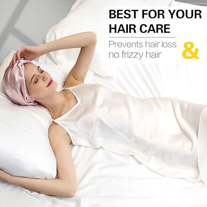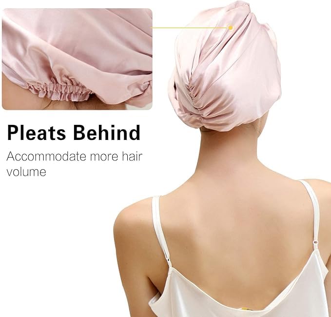 ChicAbode Satin Sleep Cap, Mulberry Silk Night Cap, Natural Silk Cap, Lightweight and Breathable, for Face Washing, Shower, Spa, Makeup and Hair Care, for Women and Girls