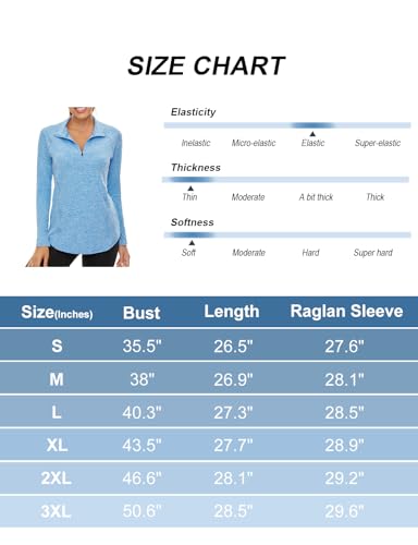 Specification: LURANEE Womens UPF 50+ Long Sleeve 1/4 Zip Pullover Athletic Hiking Running Workout Tops