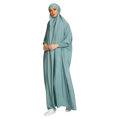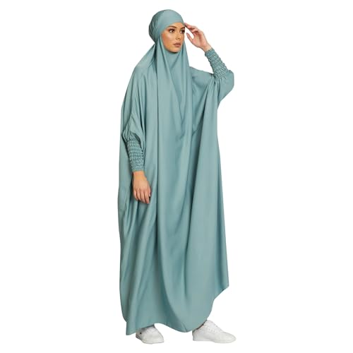 Specification: NALACAL Muslim Prayer Dress for Women, Elegant Modest Islamic Ramadan Robe, Long Sleeve Button-Down Abaya with Hoodie, Solid One-Piece Maxi Dress