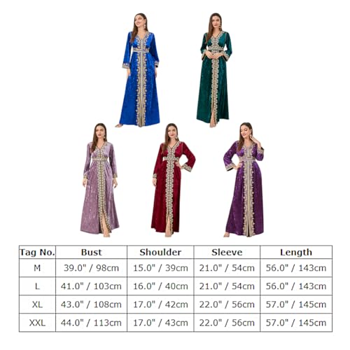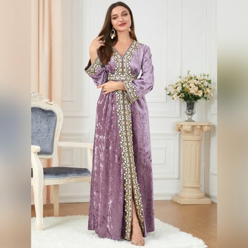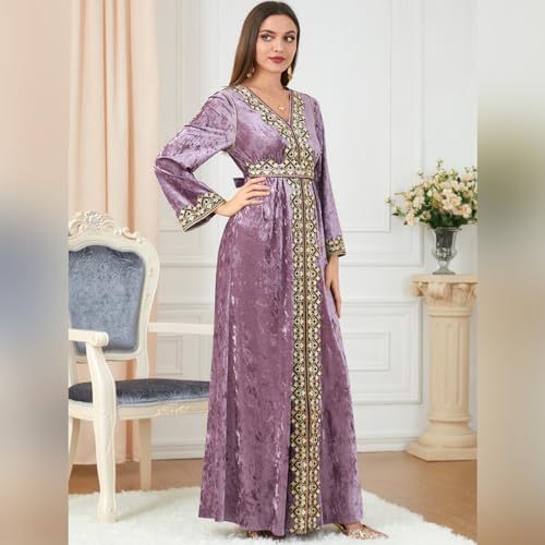 Ladies’s Fall Winter Abaya Muslim Costume Lengthy Sleeve V Neck Embroidered Velvet Costume Kaftan Dubai Islamic Costume