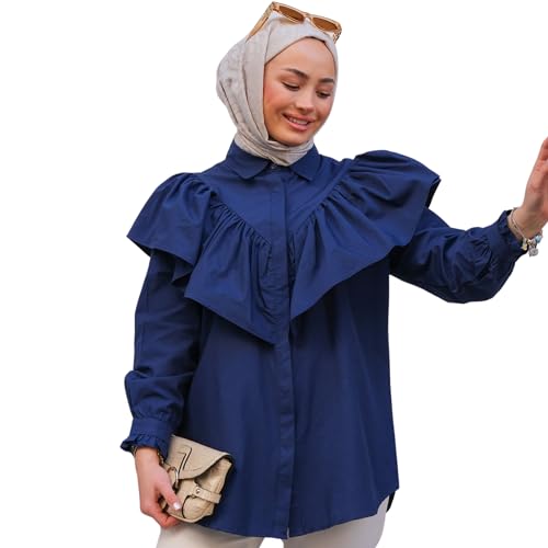 Specification: Shirt For Muslim Women’s | V-Neck Ruffle Detail Long Sleeve Hijab Women Shirts | Women’s Modest Clothing